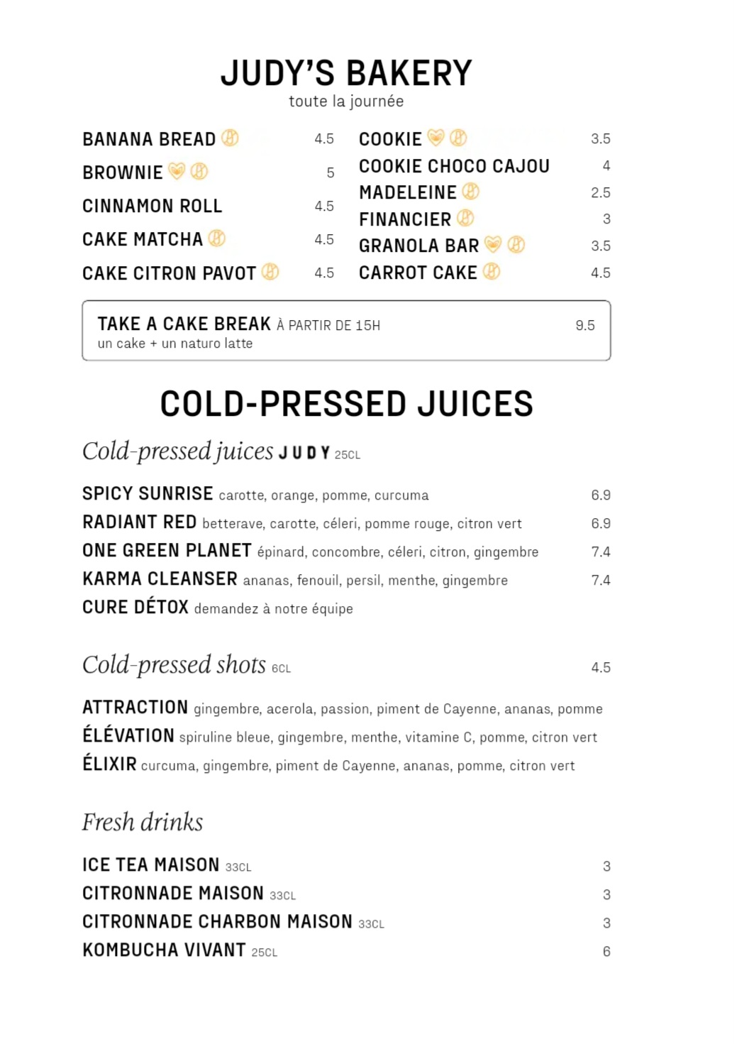 Posté le 08/11/2024 à 10:55" J'ai beaucoup parcouru le monde pendant 40 ans. J'ai mangé dans tous les restaurants allant du pop & mom's aux trois étoiles Michelin. Ceci est mon avis honnête sur le restaurant Judy à Paris. Super endroit pour un petit-déjeuner sain près du Louvre ! Ils proposent une variété d'options végétariennes et végétaliennes, ainsi que de délicieux jus de fruits en bouteille. Le service était très efficace, quoique un peu clinique. Parfait pour un début de journée nutritif ! "