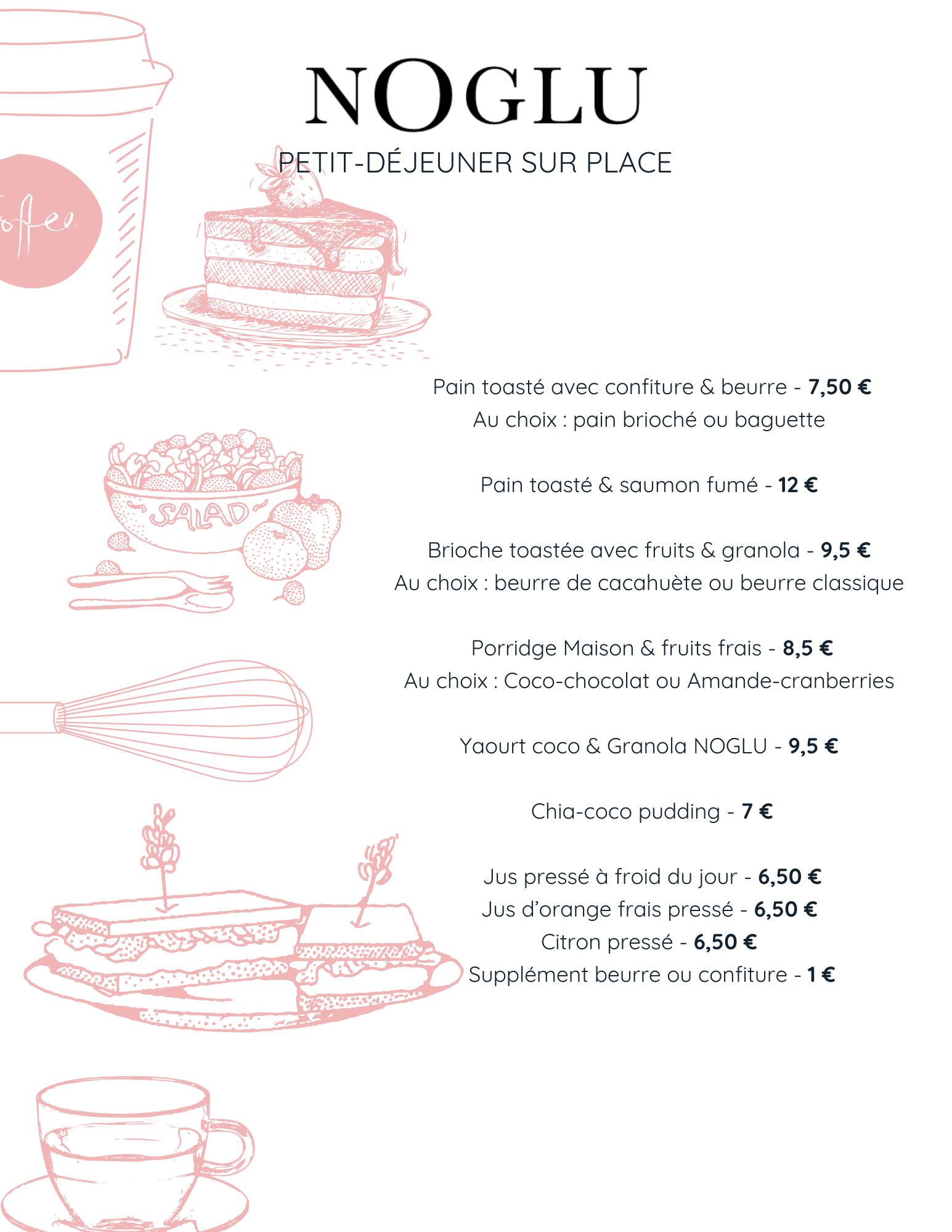 Posté le 04/09/2023 à 09:18"Malgré la chaleur, plus de glaçons (donc le café frappé était tiede), pas de the glacé, un choix médiocre (17h = fin de journée?)... nous ne reviendrons plus chez Noglu (qui utilise toujours des pailles en plastique!), et en plus nous avons payé 46 euros pour 3 malheureuses pâtisseries, 2 cafés et un citron pressé"