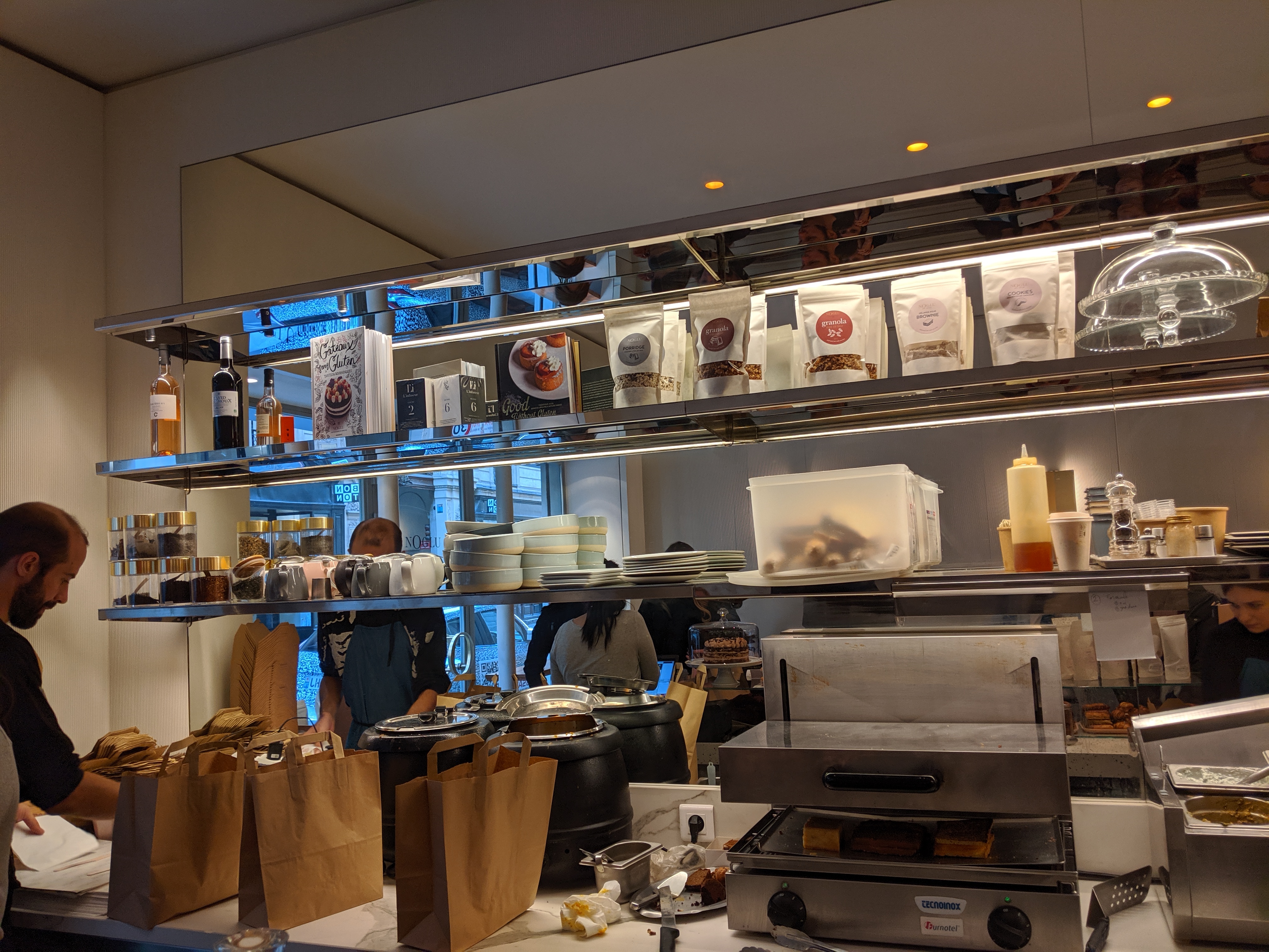 Posté le 25/07/2020 à 21:29"Une jolie boutique au coeur du 7ème, charmant intérieur et plutôt cosy. Accueil timide mais volontaire. Je voulais tester cette boutique estampillée No Gluten à emporter. Tout d'abord, c'est bon, les produits sont frais et goûtus pour du sans gluten. Mais si vous n'êtes ni intolérant ou allergique au gluten, cette boutique n'a aucun intérêt (en terme de goût, d'originalité ou de prix) C'est très cher : 11€ la quiche, 5,50€ le Paris-Brest. Je rejoins aussi certaines remarques sur le service peu avenant."
