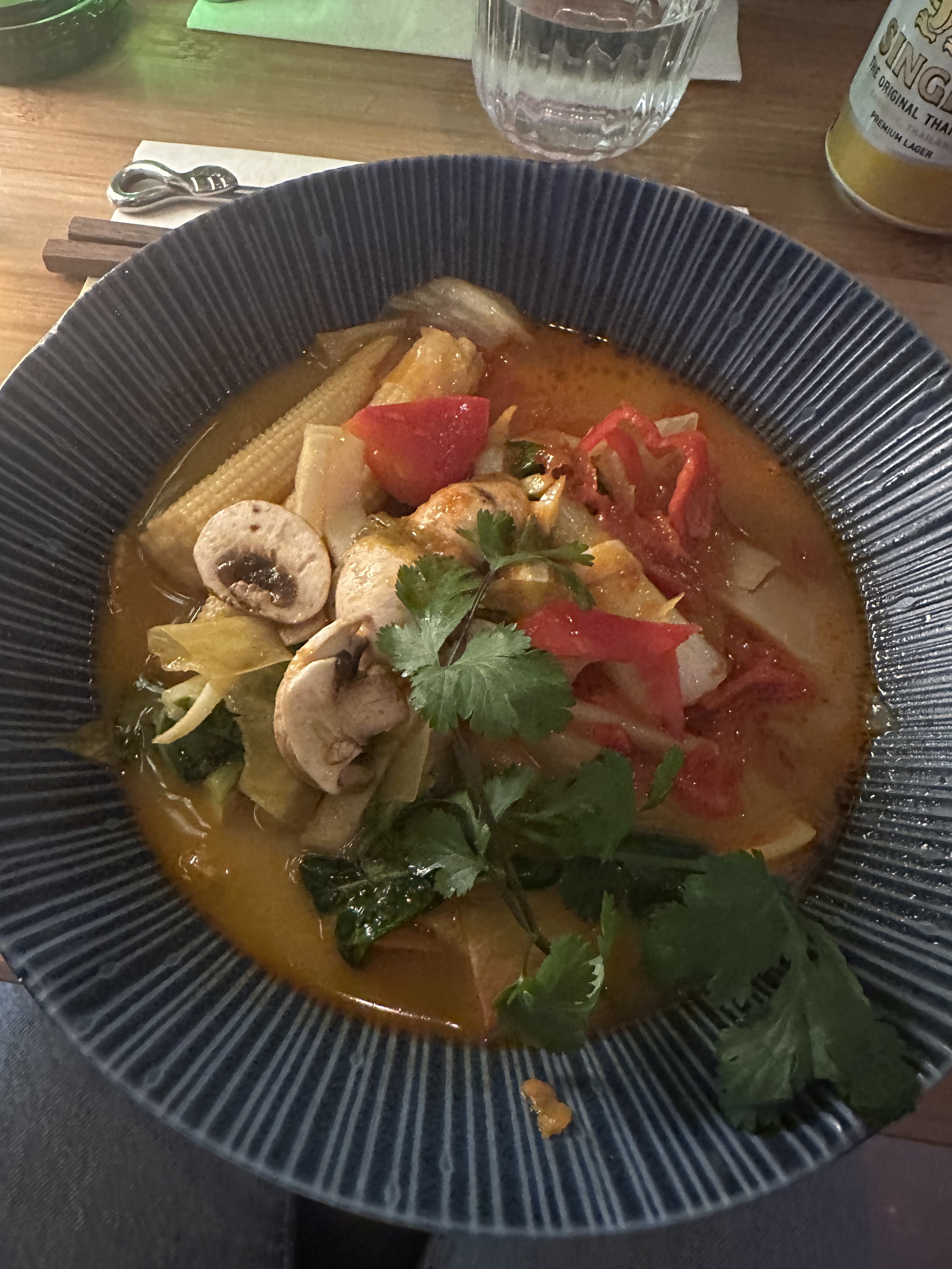 Posté le 01/02/2025 à 06:59" C'était un restaurant fantastique dirigé par quelqu'un qui souhaitait sincèrement créer une excellente expérience sans gluten pour la cuisine thaïlandaise à Paris. Vous croiserez généralement beaucoup d'Américains très riches dans les bars et restaurants de cette rue, mais le restaurant lui-même était confortable et accueillant. J'ai eu un Khao Soi qui n'était pas fidèle à l'original à bien des égards, mais tout aussi délicieux. Je reviendrai, j'ai passé un merveilleux moment. "